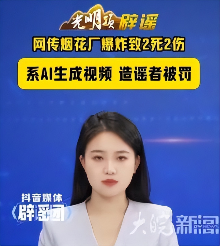 2026年3月,央视新闻报谈,江西萍乡一男人用AI生成“烟花厂爆炸”假视频,激勉公共火暴,最终被警方惩处,这等于AI诽谤的委果危害。