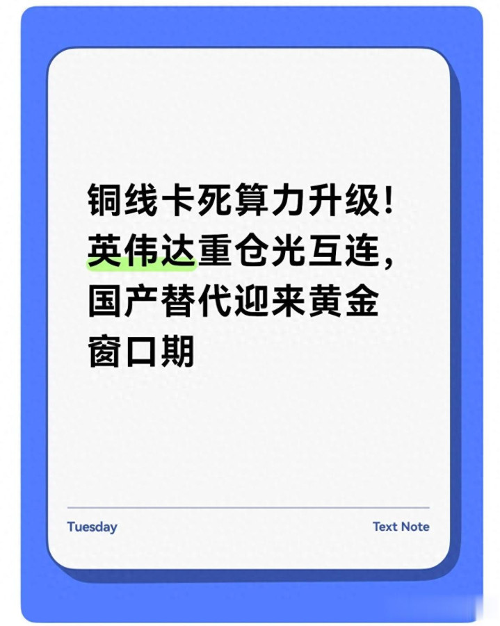 波音体育(bbinSports) 铜线卡死算力升级! 英伟达重仓光互连, 国产替代迎来黄金窗口期