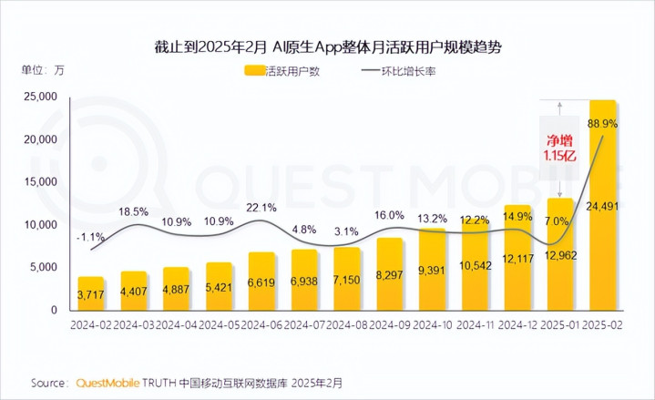 据计议数据统计,2024年11月,豆包月活跃用户破6000万。2025年第三季度,其成为国内首个日活破亿的AI原生附近。