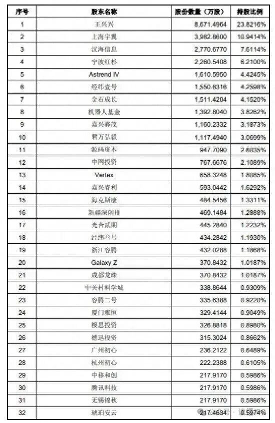 股权结构方面,公司为止权高度聚会且明星成本云集。独创东说念主王兴兴径直合手有公司23.8216%的股份,通过表决权各别安排及为止职工合手股平台,悉数为止公司68.7816%的表决权,成为公司控股股东和推行为止东说念主,确保公司发展策略的领悟鼓吹。