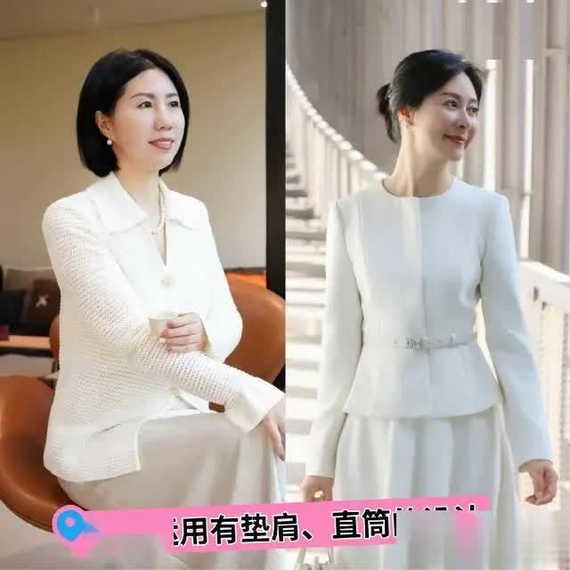 ② 讹诈有垫肩、直筒讨论的单品,修饰气质