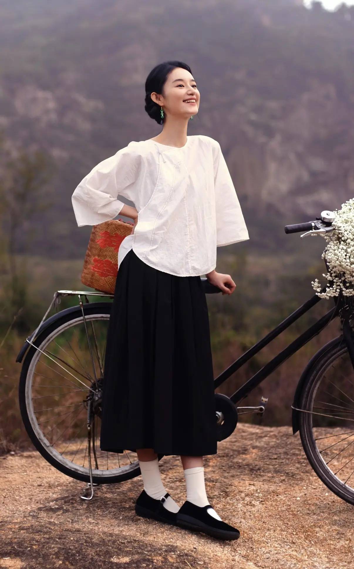 白色斜襟登第上衣搭配玄色百褶长裙,将东方好意思学穿得日常又高档。古典文体在她身上也能体现得大书特书,干净又有灵气。