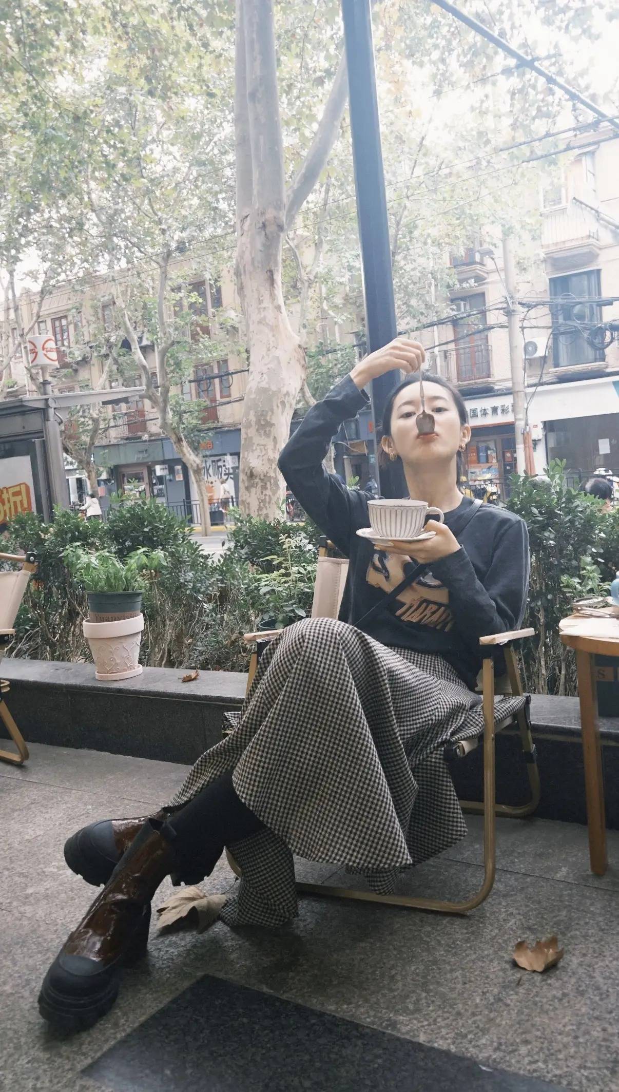 深灰色印花卫衣 + 长短格纹半身裙,失业与相沿相互碰撞,甜酷均衡得恰到平正。玄色厚底切尔西靴搭配连裤袜,拉长腿部线条,还能抗拒早春的凉意。