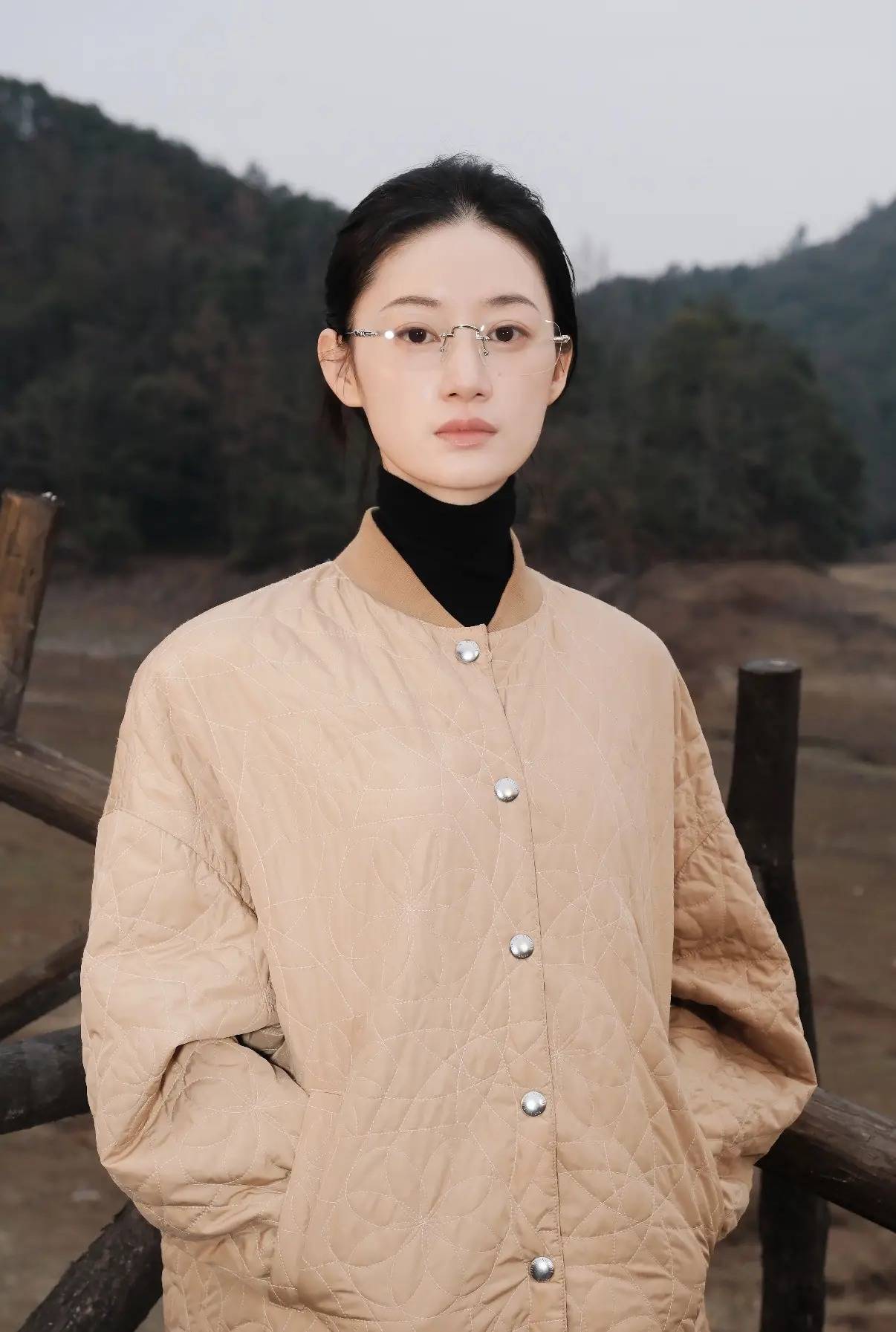 无框眼镜 + 低马尾,有种清凉知性的文艺感,宛如在萧瑟写生的女学生,安稳又有劲量。