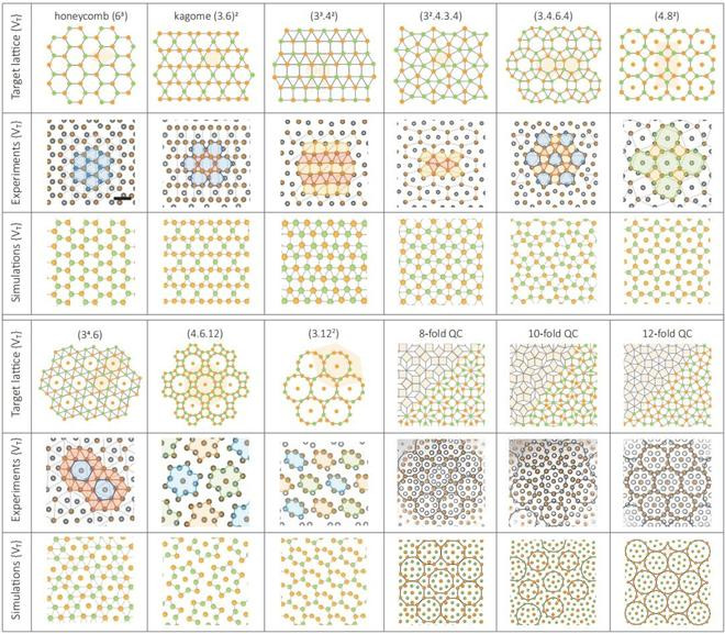 dsg政策以及在二维胶体实验和分子能源学模拟中的完了。图片展示了9种阿基米德晶格和三种准晶格,其结构由3,4,6,8,10,12旋转对称单位按特定次序拼装而成,发扬出复杂小巧的全局对称性和多圭表结构特点。