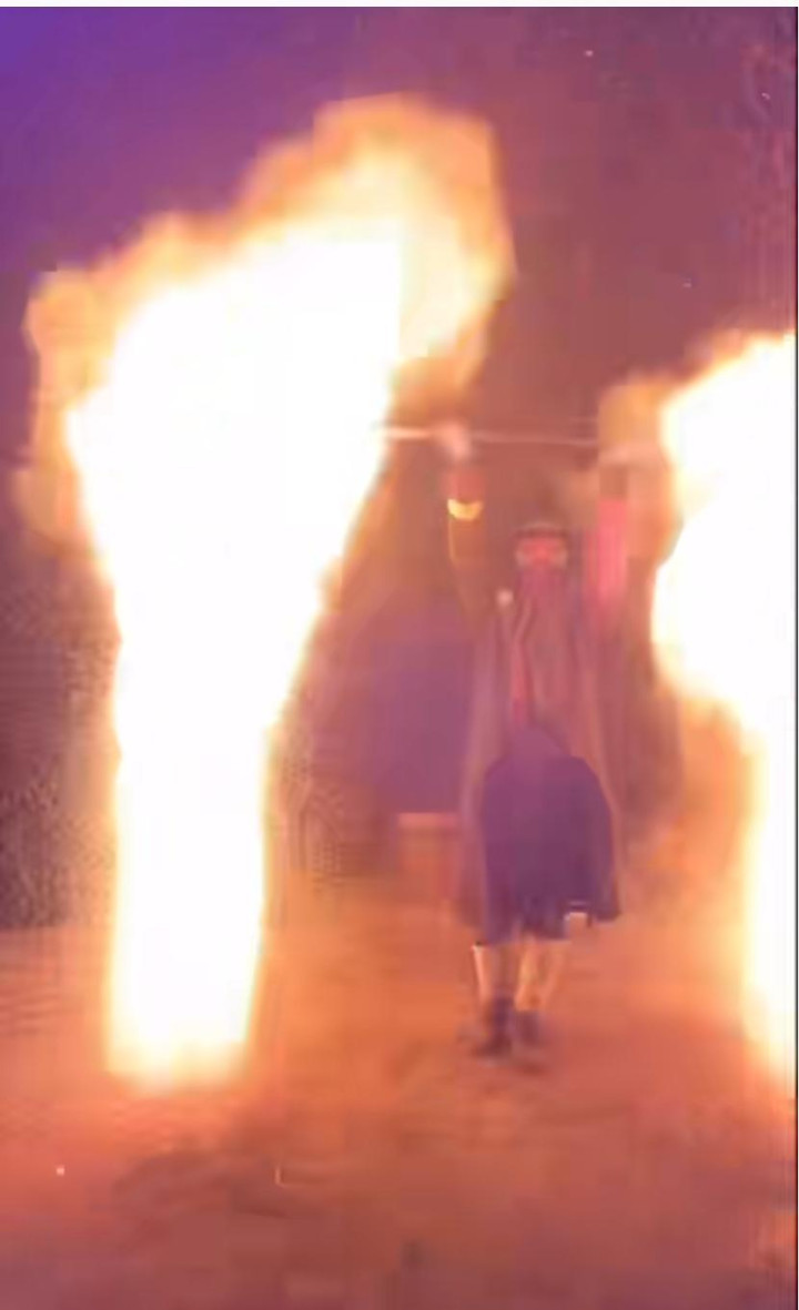 有东谈主刷了一辆跑车——一千二百钻,相当于一百二十块钱——该作念炭火舞了。他把烧至通红的柴炭装进铁网炭笼的火壶,戴上护目镜,穿好驻守服。威望恢宏的国风音乐响起,他舞起炭火,两个火球高下翻飞,火星四处飘散,悉数这个词东谈主被熊熊火焰包围。音乐到高涨处,他双手举起铁杆浪荡,星火如瀑布般散落。