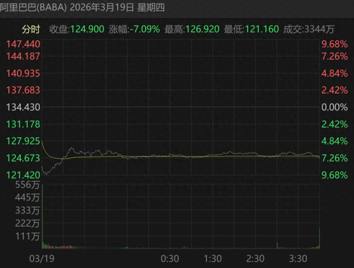3月19日晚好意思股开盘后,阿里巴巴大幅低开,收盘大跌朝上7%,整宿间挥发了快要230亿好意思元,约合近1600亿东说念主民币。