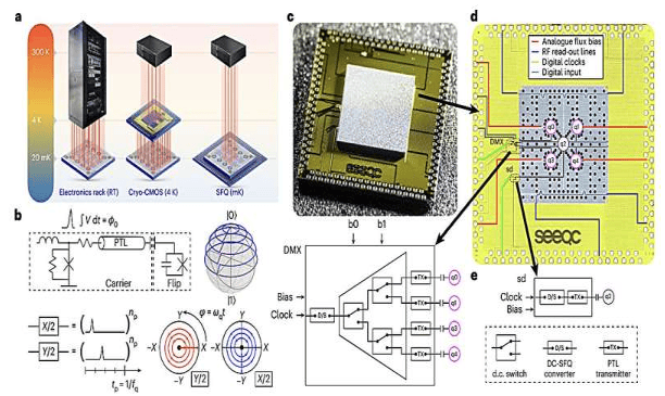 近日,好意思国Seeqc Inc.的商议东谈主员在《Nature Electronics》期刊上发表论文,先容了一种新式超导量子解决器。该解决器招揽多芯片模块野心,将量子比特与欺压电子器件集成在两个孤独的超导芯片上,通过倒装焊本领相接,有用减少了布线需求。