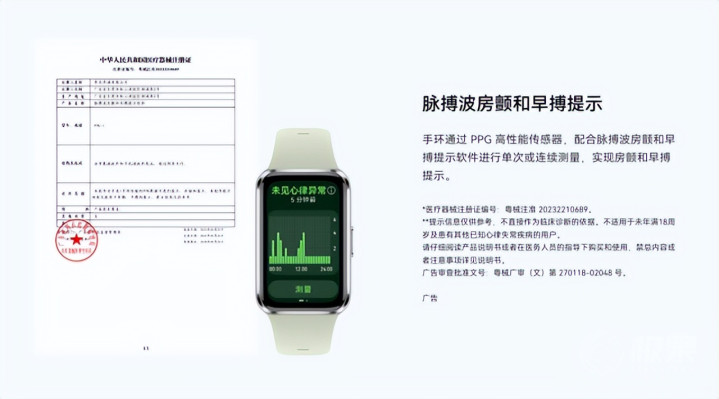 华为手环的健康监测能力也极为全面。华为手环 11 系列搭载高性能 PPG 传感器,支撑脉搏波房颤和早搏领导,有用扶持用户识别潜在心律失常风险,鼓动从"被迫诊治"向"主动审视"的滚动。该功能已获中国医疗器械注册证与欧洲 CE 认证,适合国外主流医疗器械考据圭臬。(领导:本居品非医疗器械,所提供的健康数据、戒指、淡薄等仅供参考,不算作会诊和诊治的依据。)